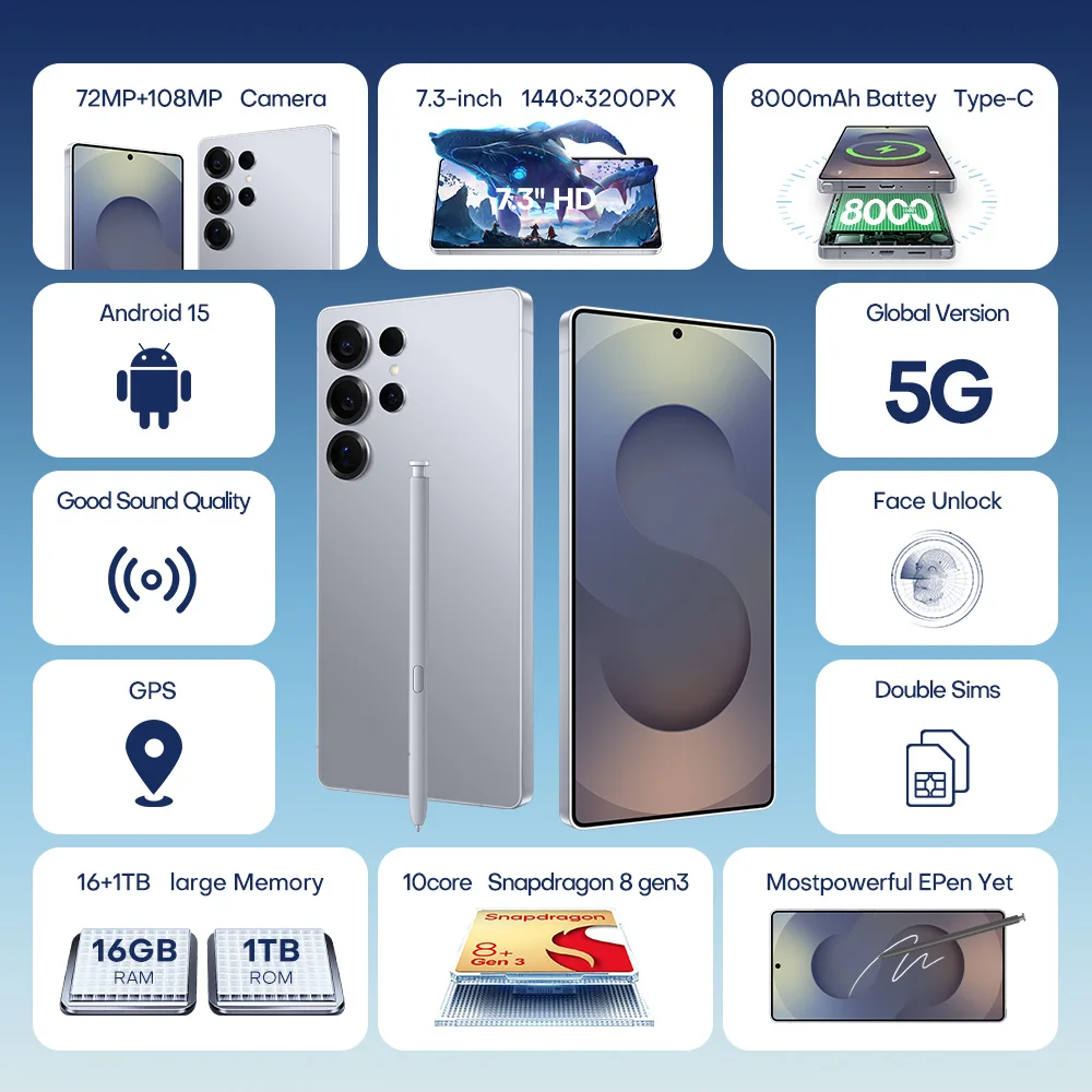 Full screen, Face recognition,Screen finger print, Dual SIM, Wifi, GPS, Gravity Sensor, Alarm ,Calendar ,Calculator ,Audio