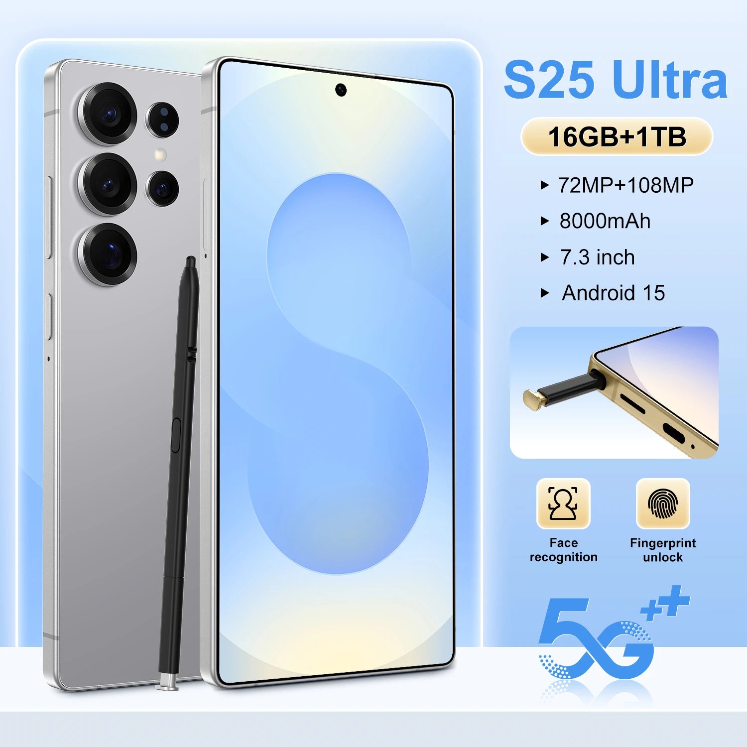 Best Sell New for S25 ultra Original Phone 5G Smartphone 7.3 Inch 16GB+1TB Android Telephone Mobile Phones Blue